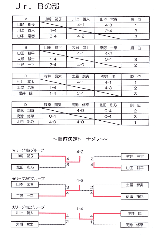 第2回ジュニアスクール生トーナメント結果